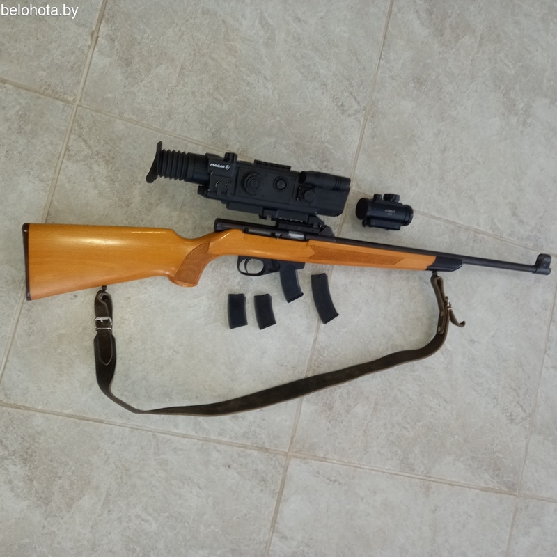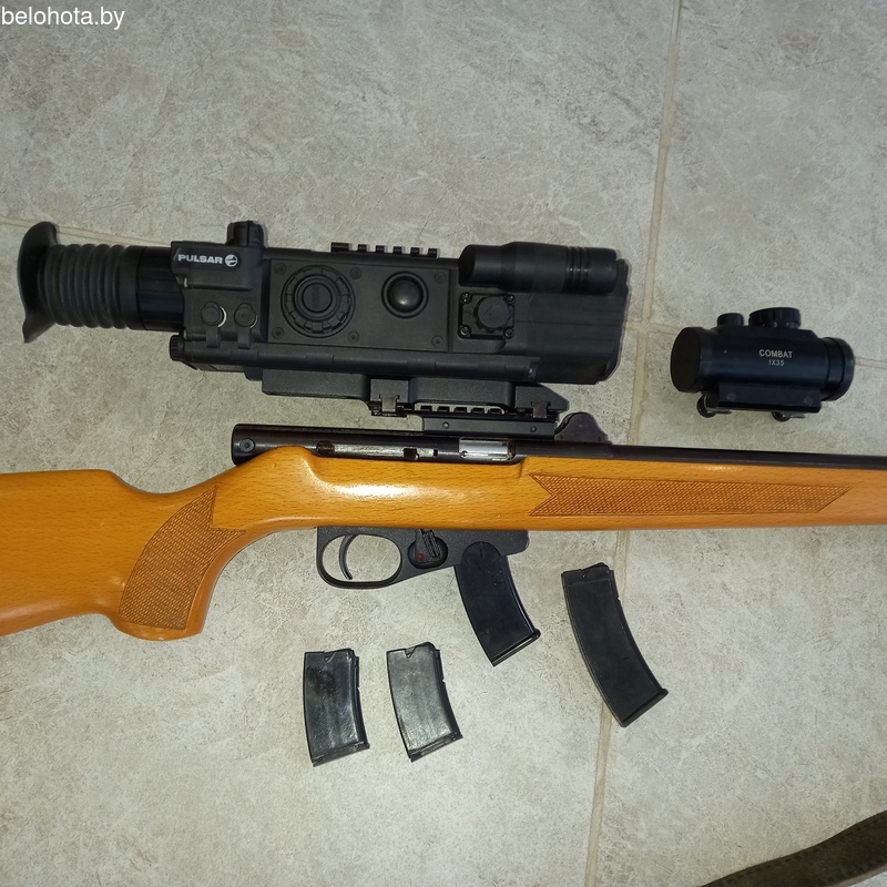 Карабин ТОЗ-99 самозарядный малокалиберный 5.6мм lr22. Прицел день/ночь цифровой PULSAR DIGISIGHT-LRF N870 (длина волны 915нм невидимый лазерный ИК-осветитель) и прицел коллиматорный combat 1*35. два магазины на 10шт. и два магазины на 5шт. патронов. Карабин покупался новым в 2017г. малый настрел. Цена 3400р. за всё. По отдельности можно обсуждать. Много припасов за отдельную плату. Телефон 8029 6505037
