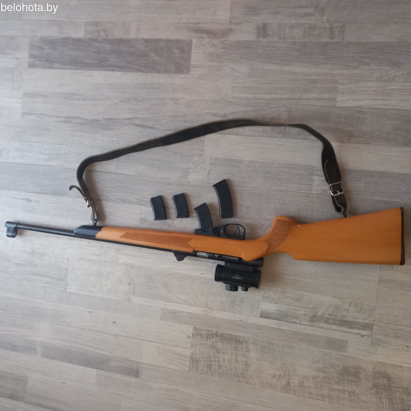Карабин ТОЗ-99 самозарядный малокалиберный 5.6мм lr22. Прицел коллиматорный combat 1*35. два магазины на 10шт. и два магазины на 5шт. патронов. Карабин покупался новым в 2017г. малый настрел. Цена 2000р. за всё с патрономи. По отдельности можно обсуждать. Много припасов . Телефон 8029 6505037